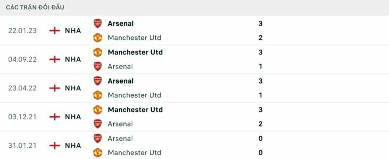 • Thành tích đối đầu Arsenal vs MU: