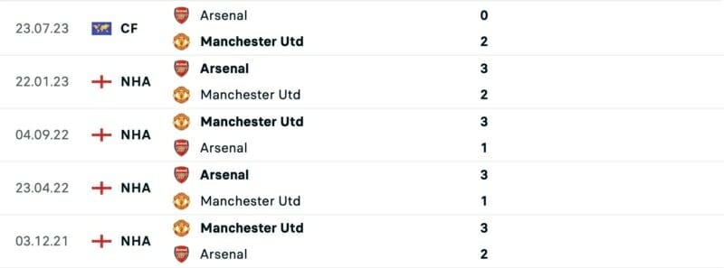 Thành tích đối đầu Arsenal vs Man United