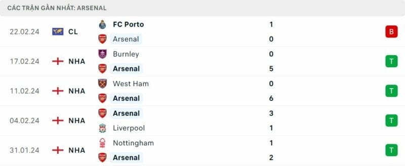 Sau khi bắt đầu năm mới với 5 chiến thắng liên tiếp, Arsenal đã trở lại mặt đất khi nhận bàn thua đau đớn ở phút 94 trước Porto, tại lượt đi vòng 16 đội Cúp C1. HLV Mikel Arteta phàn nàn về việc đội bóng của ông thiếu “sự đe dọa” về tổng thể, vì Pháo thủ không thể thực hiện được một cú sút trúng đích nào. Đáng nói, đội bóng của ông đã ghi 21 bàn trong 5 trận đầu tiên ở Premier League trong năm 2024.