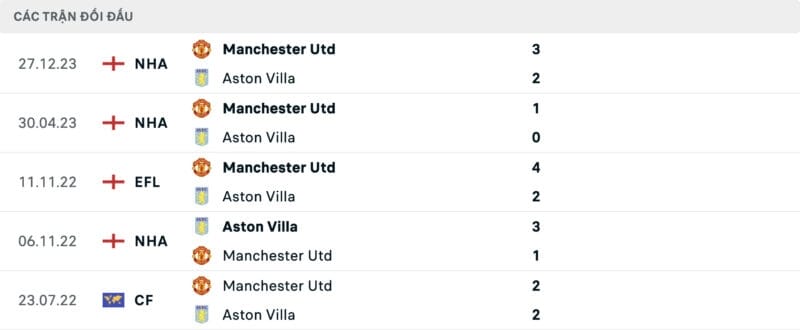 Nếu muốn nuôi hi vọng giành tấm vé tham dự Champions League, Man United cần thể hiện tham vọng của mình trước một đối thủ trực tiếp như Aston Villa. Ở trận lượt đi mùa này, Quỷ đỏ đã vượt qua đối thủ với tỉ số 3-2. Thành tích đối đầu hoàn toàn ủng hộ thầy trò HLV Erik ten Hag khi họ toàn thắng trong 3 lần gần nhất đối đầu Aston Villa. Điều đó sẽ tiếp thêm sự tự tin cho đoàn quân áo đỏ trong chuyến làm khách tới sân Villa Park.