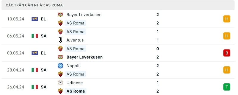 Phía bên kia chiến tuyến, AS Roma cũng thi đấu trận lượt về bán kết Europa League 2023/24 hồi giữa tuần. Tuy nhiên trái ngược với Atalanta, đoàn quân của HLV Daniele De Rossi lại phải dừng bước trước Bayer Leverkusen với tổng tỷ số 2-4 sau hai lượt trận.