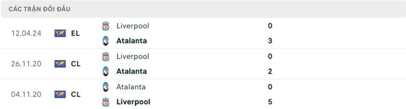 Thành tích đối đầu Atalanta vs Liverpool