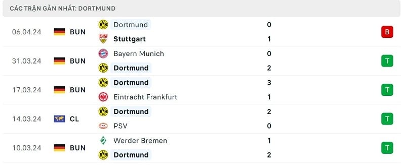 Tuy nhiên người hâm mộ của Dortmund vẫn có thể an tâm phần nào khi trước đó, Die Borussen đã có phong độ khá tốt. Cụ thể, đoàn quân của HLV Edin Terzic sở hữu chuỗi 5 trận toàn thắng trước khi chạm trán Stuttgart, trong đó có cả chiến thắng với tỷ số 2-0 trước Bayern Munich.