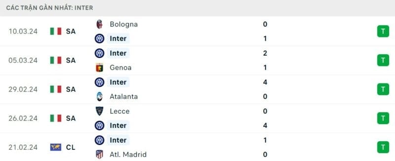 Trái ngược với đối thủ, Inter Milan lại đang thi đấu vô cùng thăng hoa. Đoàn quân của HLV Simeone Inzaghi đã bất bại 15 trận liên tiếp trên mọi đấu trường, trong đó có 12 chiến thắng liên tiếp tại Serie A. Với khoảng cách lên tới 16 điểm so với nhóm bám đuổi, Scudetto coi như đã nằm trong tay Inter. Điều đó giúp họ có thể tập trung vào đấu trường Champions League.
