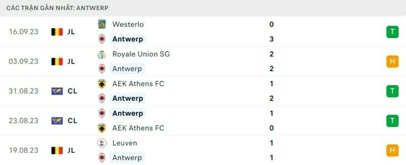 Antewrp cũng giành được thắng lợi trong loạt trận cuối tuần rồi khi đánh bại Westerlo với tỉ số 3-0. Tuy nhiên kết quả này chỉ giúp họ xếp ở thứ 5 tại giải VĐQG Bỉ với 11 điểm sau 6 vòng đấu. Antewrp sẽ phải đối diện với thử thách lớn hơn rất nhiều vào ngày thứ Tư tới, đó là chuyến hành quân tới thành phố Barcelona.
