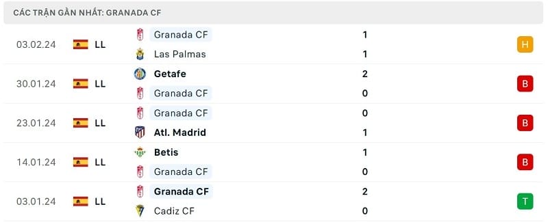 Phía bên kia chiến tuyến, Granada đang vất vả đua trụ hạng. Đoàn quân của HLV Alexander Medina hiện đứng thứ 19 với chỉ 12 điểm. Tính từ đầu mùa giải đến nay, Granada mới giành được 2 chiến thắng, 6 trận hòa và nhận đến 15 thất bại.