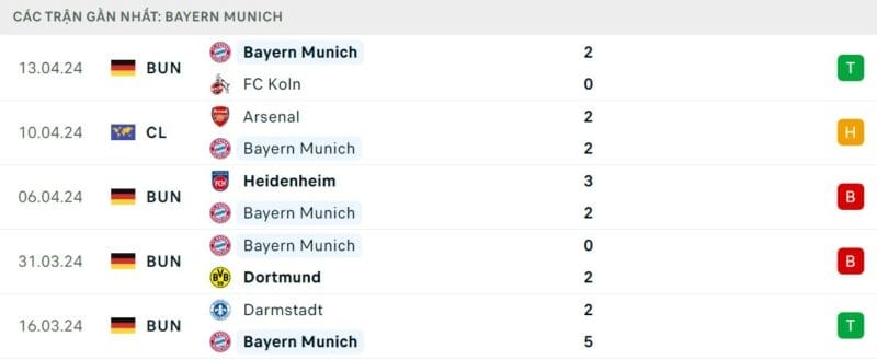 Phong độ Bayern Munich vs Arsenal