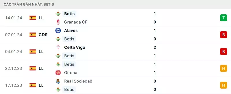 Real Betis sẽ thi đấu vòng 21 La Liga sau chiến thắng 1-0 trước Granada vào cuối tuần trước. Isco là người lập công duy nhất cho CLB chủ quản ở phút thứ 76. Đó là lần ca khúc khải hoàn đầu tiên của Betis tại La Liga kể từ cuối tháng 11. Trong những tuần gần đây, CLB hòa rất nhiều, nhưng đội bóng của Manuel Pellegrini vẫn là tập thể khó bị đánh bại. Họ chỉ thua 1 trong 15 trận gần nhất tại La Liga, tính từ giữa tháng 9 năm ngoái đến nay.