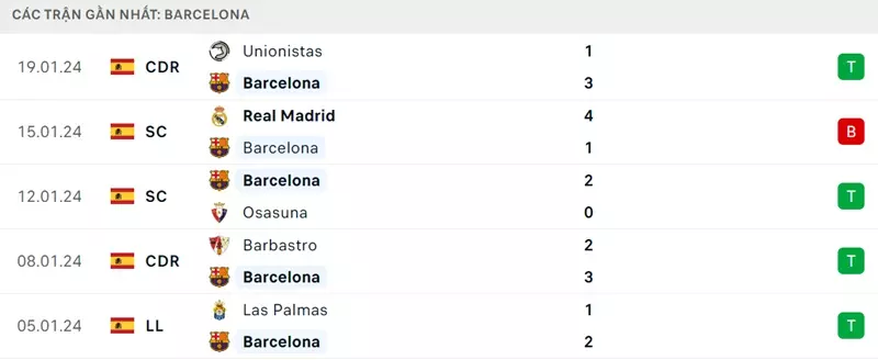 Bất chấp sự trỗi dậy của Girona và Athletic Bilbao, Barca vẫn được coi là đối thủ chính của Real Madrid trong cuộc đua giành chức vô địch. Hiện tại, áp lực dành cho Xavi Hernandez là rất lớn, nhưng nó phần nào giảm tải sau chiến thắng 3-1 trước Unionistas tại Cúp nhà vua Tây Ban Nha. 5 trận gần nhất, đội bóng xứ Catalan thắng 4 và chỉ 1 lần muối mặt. Thành tích đó không hề tệ để Barca tự tin vượt các chướng ngại ở chặng đường phía trước.