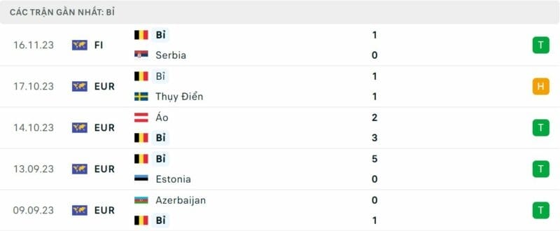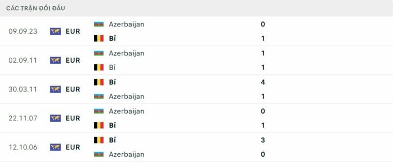 Thành tích đối đầu Bỉ vs Azerbaijan