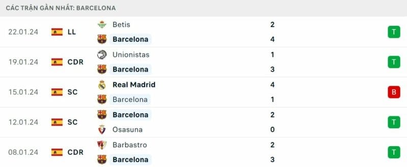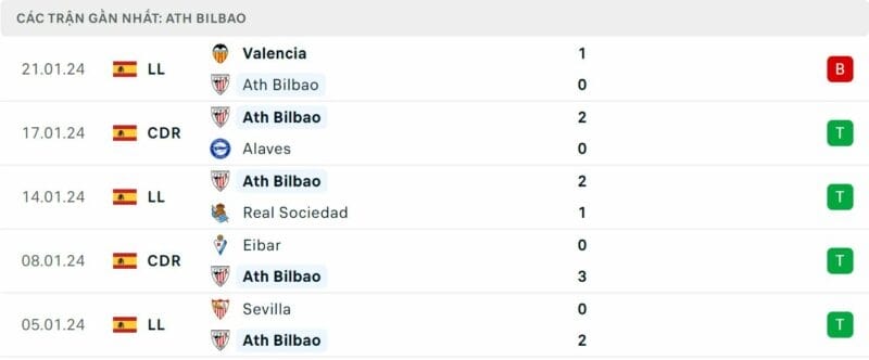 Phong độ Bilbao vs Barca