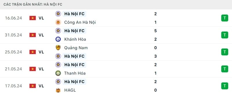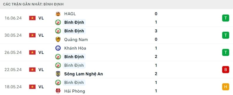 Phong độ gần đây Bình Định vs Hà Nội