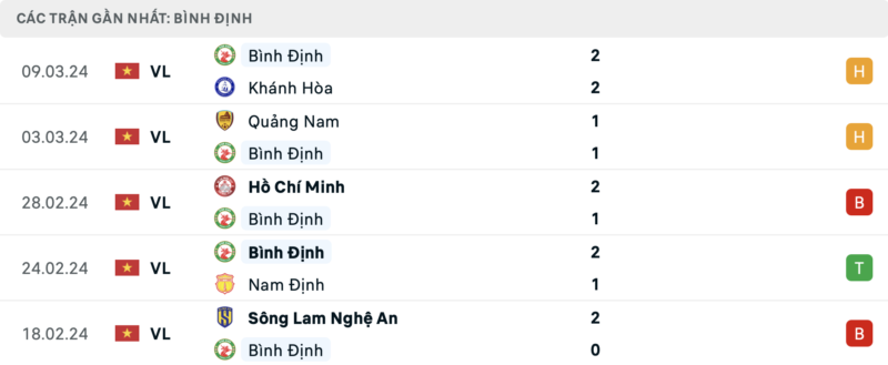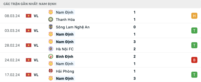 Phong độ Bình Định vs Nam Định