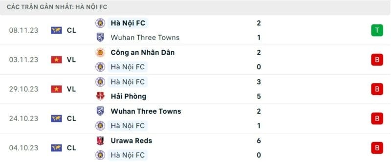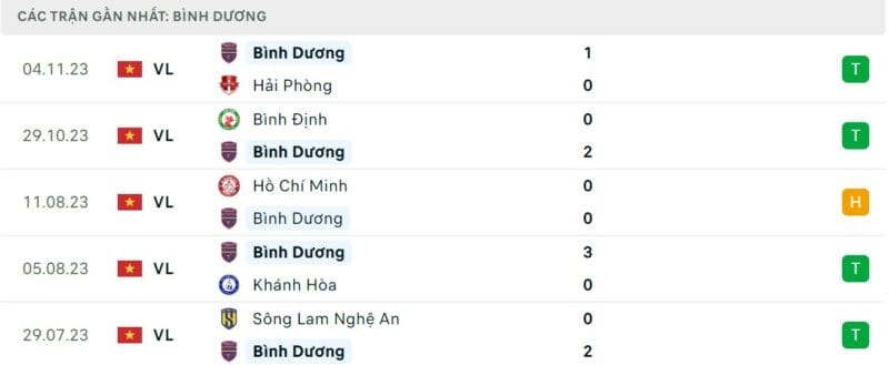 Phong độ gần đây Bình Dương vs Hà Nội: