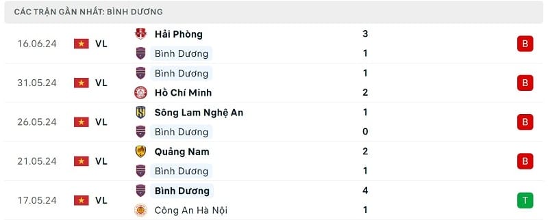 Ở vòng đấu gần nhất, Bình Dương đã phải nhận thất bại với tỷ số 1-3 trước Hải Phòng. Kết quả này nối dài chuỗi thành trận thua liên tiếp của đội chủ sân Gò Đậu lên con số 4. Hàng phòng ngự đang là vấn đề lớn với Bình Dương khi họ thủng lưới đến 9 bàn trong 5 trận gần nhất.