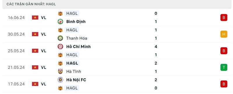 Tính trong 5 trận gần nhất, HAGL chỉ có duy nhất 1 chiến thắng, còn lại là 1 trận hòa và phải nhận đến 3 thất bại. Ở vòng đấu trước, dù được chơi hơn người nhưng đoàn quân của HLV Vũ Tiến Thành vẫn để thua Bình Định với tỷ số 0-1.