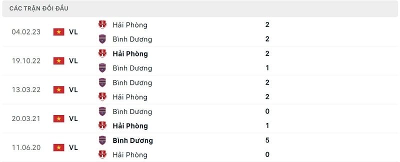 Thành tích đối đầu Bình Dương vs Hải Phòng: