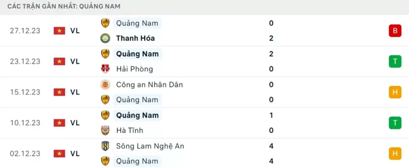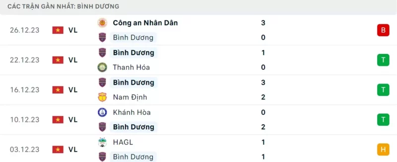 Phong độ gần đây Bình Dương vs Quảng Nam: