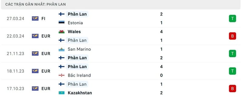 Phía bên kia chiến tuyến, ĐT Phần Lan đã thất bại trong việc giành vé tham dự VCK Euro 2024. Ở trận playoff, đoàn quân của HLV Markku Kanerva để thua ĐT xứ Wales với tỷ số đậm 1-4.