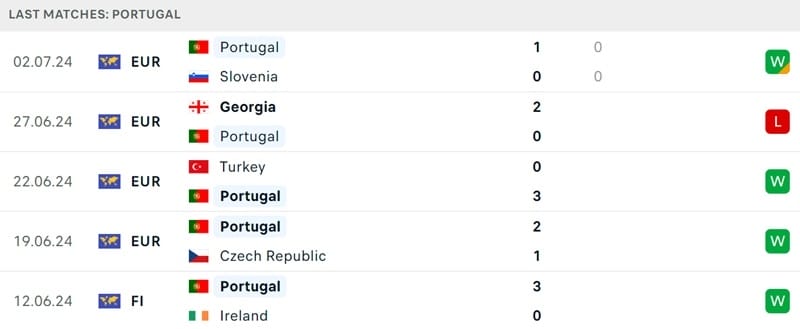 Phong độ gần đây Bồ Đào Nha vs Pháp