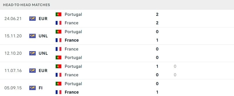 Thành tích đối đầu Bồ Đào Nha vs Pháp
