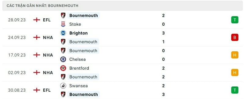 Quay trở lại đấu trường Ngoại hạng Anh, Bournemouth hiện đang có thành tích cực kỳ tệ hại. The Cherries chưa giành được bất cứ chiến thắng nào sau 6 vòng đấu (3 trận hòa, 3 thất bại), có tổng cộng 3 điểm và xếp thứ 17 trên bảng xếp hạng. Với chất lượng nhân sự không ấn tượng, trụ hạng có lẽ là mục tiêu phù hợp với Bournemouth ở mùa giải này.
