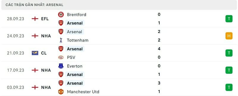 Phong độ Bournemouth vs Arsenal: