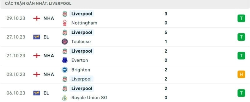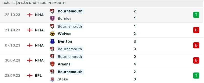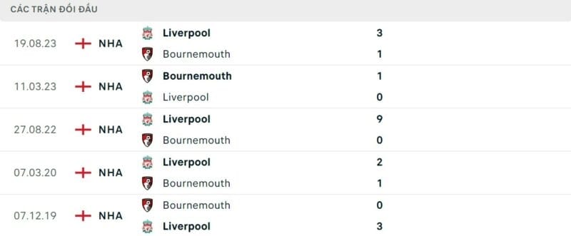 Thành tích đối đầu Bournemouth vs Liverpool: