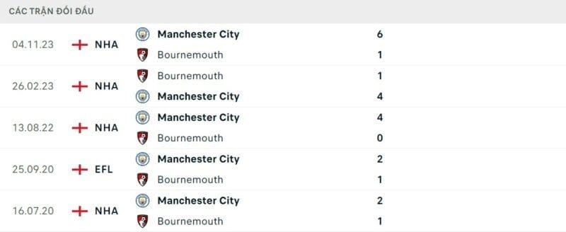 Các CĐV The Cityzens có đầy đủ lí do để tự tin trong chuyến hành quân tới sân Vitality. Bởi đây là con mồi ưa thích của nửa xanh thành Manchester. Họ toàn thắng trong 13 lần gần nhất đối đầu Bournemouth. Với phong độ trái ngược của hai đội, nhiều khả năng chuỗi trận đó sẽ tiếp tục được kéo dài.