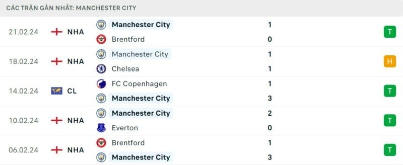 Trái ngược với đối thủ, Man City vẫn đang duy trì phong độ thuyết phục. Chiến thắng tối thiểu trước Brentford trong trận đấu bù hồi giữa tuần giúp The Cityzens nối dài chuỗi trận bất bại tại Ngoại hạng Anh lên con số 10. Trong đó, họ thắng 8 trận và ghi tới 22 bàn.