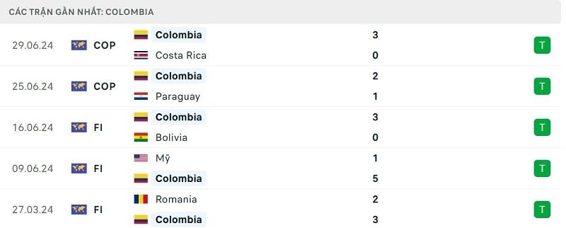 Đáng chú ý, ĐT Colombia đang có phong độ rất cao. Los Cafeteros hiện có chuỗi 10 trận thắng liên tiếp trên mọi đấu trường. Tính rộng hơn, ĐT Colombia đang có chuỗi 25 trận bất bại liên tiếp (20 trận thắng, 5 trận hòa). Lần gần nhất họ phải nhận thất bại đã là từ ngày 02/02/2022 khi chạm trán ĐT Argentina (0-1).