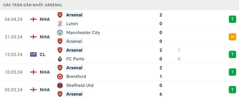 Với việc hòa 0-0 trước Manchester City, Arsenal trải qua chuỗi 4 trận sạch lưới trên sân khách. Đó là bước đệm giúp á quân Premier League thắng dễ Luton Town 2-0 ở Emirates. Chiến thắng thứ 9 của Arsenal sau 10 trận ở Premier League vào năm 2024 chứng kiến họ tạm thời soán ngôi Liverpool để lên đỉnh bảng, dù The Kop nhanh chóng đòi lại thứ thuộc về mình nhờ việc đánh bại Sheffield United tại Anfield.