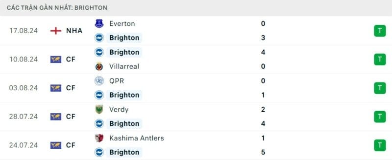 Tân HLV Fabian Hurzeler của Brighton cũng đã có màn chào sân Ngoại hạng Anh không thể ấn tượng hơn. Mòng biển đè bẹp Everton với tỉ số 3-0 để tạm dẫn đầu bảng sau vòng đấu mở màn. Đây đã là chiến thắng thứ 5 liên tiếp của đội bóng này.