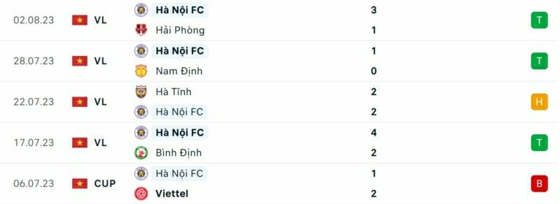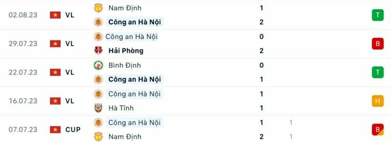 Phong độ CAHN vs Hà Nội FC:
