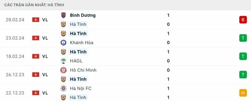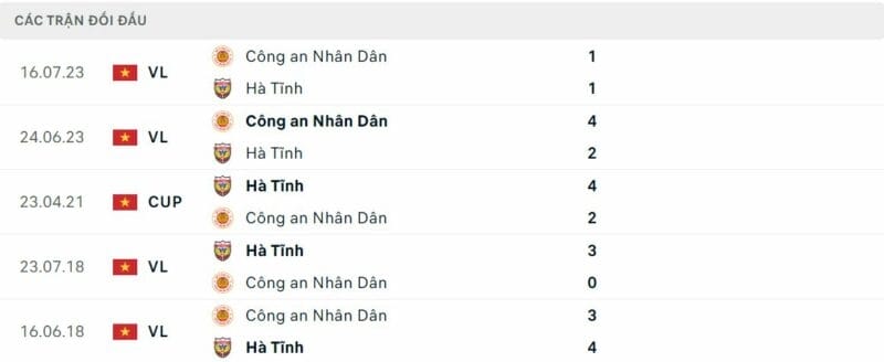 Phong độ CAHN vs Hà Tĩnh: