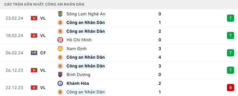Phong độ gần đây CAHN vs Thanh Hóa:
