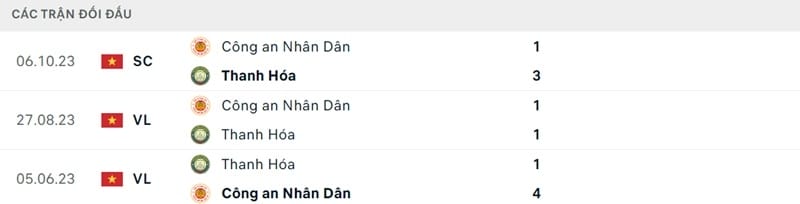 Chính nhờ tuyến đầu thăng hoa nên Thanh Hóa thắng 3, hòa 1 và thua 1 trong lần lần ra sân gần nhất. Họ rõ ràng là mối đe doa đối với CAHN khi từng đánh bại CLB thủ đô thuyết phục để vô địch Siêu Cúp Quốc gia 2023. Xét trong 3 lần đối đầu gần nhất, Thanh Hóa thắng 1, hòa 1 và thua 1, thống kê chỉ ra 2 đội bóng đồng cân đồng lạng như thế nào, ít nhất là xét về đẳng cấp chơi bóng.