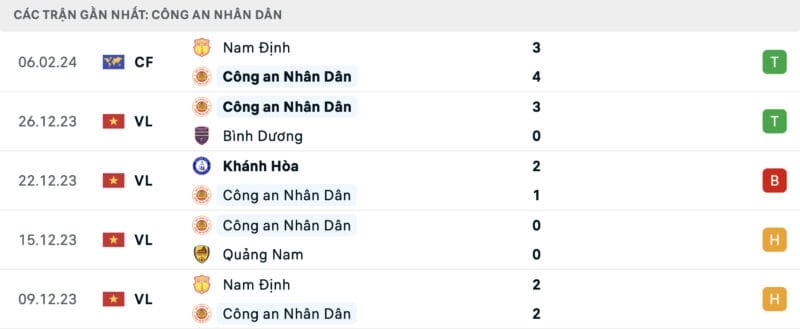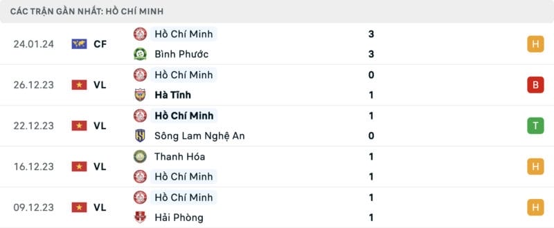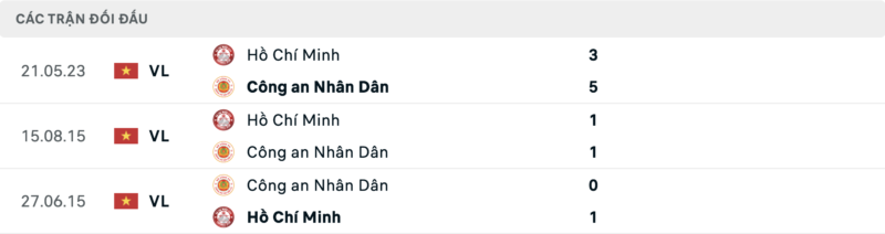 Phong độ CAHN vs TP.HCM