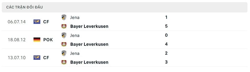 Thành tích đối đầu Carl Zeiss Jena vs Bayer Leverkusen