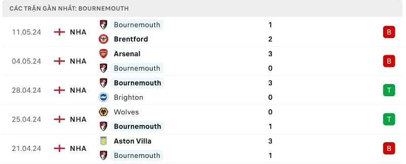 Xét về mặt phong độ, The Cherries đang có màn trình diễn khá bất ổn. Cụ thể, tính trong 5 trận gần nhất, Bournemouth giành được 2 chiến thắng và phải nhận 3 thất bại.