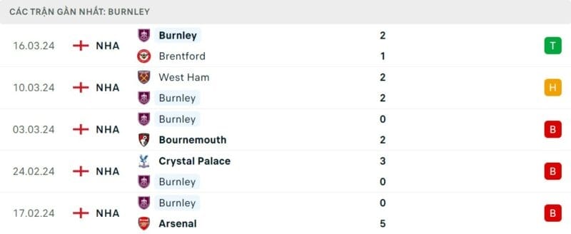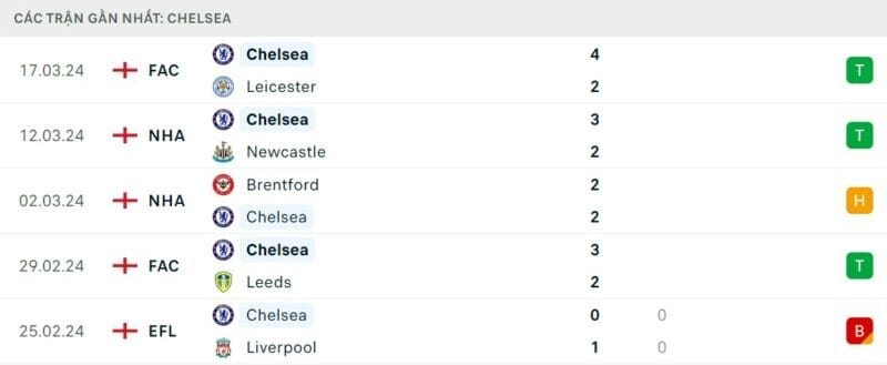 Phong độ Chelsea vs Burnley