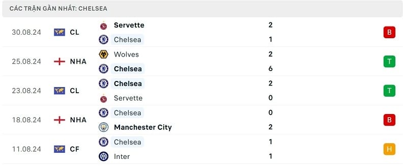 Do đó, Chelsea đang thể hiện phong độ thiếu ổn định. Ở vòng đấu gần nhất tại Ngoại hạng Anh, The Blues đã đánh bại Wolves với tỷ số đậm 6-2. Tuy nhiên sau đó ít ngày, đoàn quân của HLV Enzo Maresca bất ngờ để thua Servette 1-2 tại trận lượt về playoff Europa Conference League (Chelsea đi tiếp nhờ tổng tỷ số 3-2).