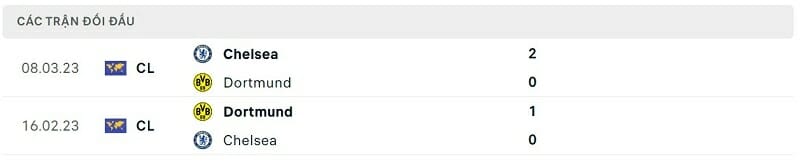 Thành tích đối đầu Chelsea vs Dortmund: