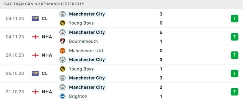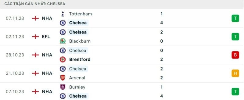 Phong độ gần đây Chelsea vs Man City: