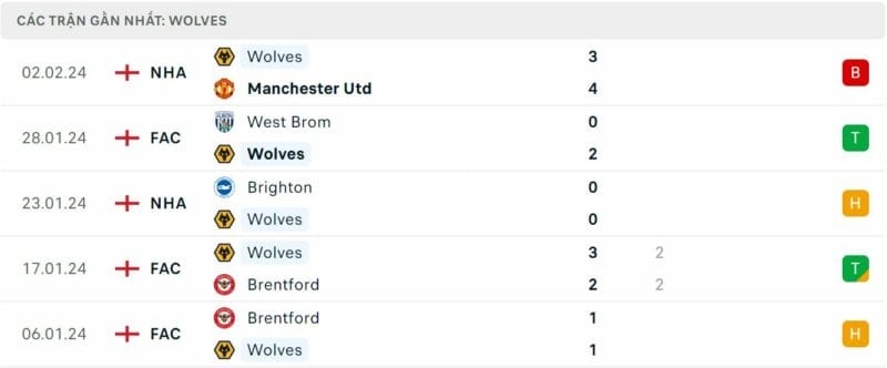 - Wolves: Cunha (22’, 63’, 82’), Axel Disasi (43’ - Phản lưới nhà)