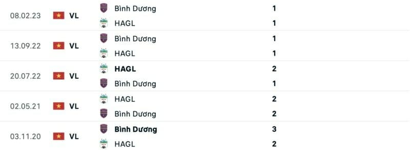 Thành tích đối đầu HAGL vs Bình Dương: