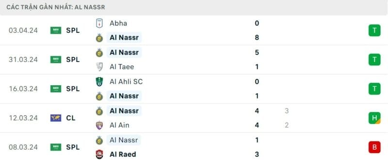 Al Nassr đang có mạch 3 trận toàn thắng tại giải VĐQG. Mới nhất, họ có màn hủy diệt Abha với 8 bàn cách biệt, qua đó cân bằng thành tích với đội đầu bảng Al Hilal về số lần chọc thủng lưới đối phương. Dù hy vọng vô địch của Al Nassr là tương đối mong manh, nhưng đội bóng của HLV Castro sẽ không từ bỏ cho đến những vòng cuối. Ở vòng 27, Al Nassr tiếp tục có thêm chuyến làm khách đến sân của Damac.