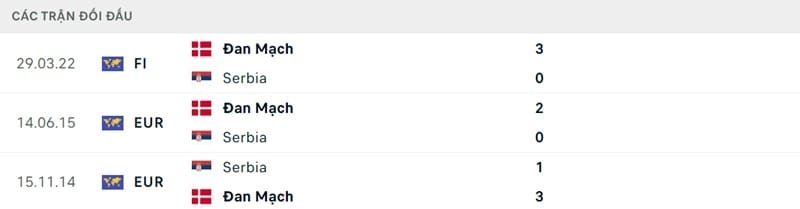 3 lần chạm trán gần nhất chứng kiến Đan Mạch đánh bại Serbia với tổng tỷ số 8-1. Trong đó, trận đấu mới đây kết thúc với tỷ số 3-0 cho Đan Mạch vào năm 2022. Vì vậy, dựa vào vị thế của 2 đội hiện tại, nỗi buồn dành cho người Serbia nhiều khả năng kéo dài.