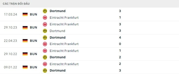 Thành tích đối đầu Dortmund vs Frankfurt