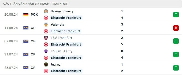 Phía bên kia, Frankfurt cũng đặt mục tiêu kết thúc mùa giải ở nửa trên BXH, thậm chí là đoạt vé dự cúp Châu Âu. Phong độ của CLB này khá trồi sụt trong nửa thập kỷ trở lại đây. Frankfurt từng 2 lần vào chung kết Europa League, nhưng cũng phải trầy trật chiến đấu cho suất trụ hạng của Bundesliga. Mùa hè qua, Frankfurt mua bán cực kỳ tấp nập, với sao trẻ Willian Pacho đến PSG. Ngược lại, Frankfurt đem về chân sút Hugo Ekitike của đội bóng thành Paris.